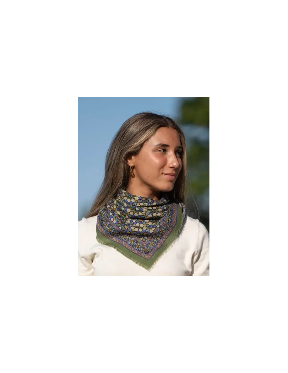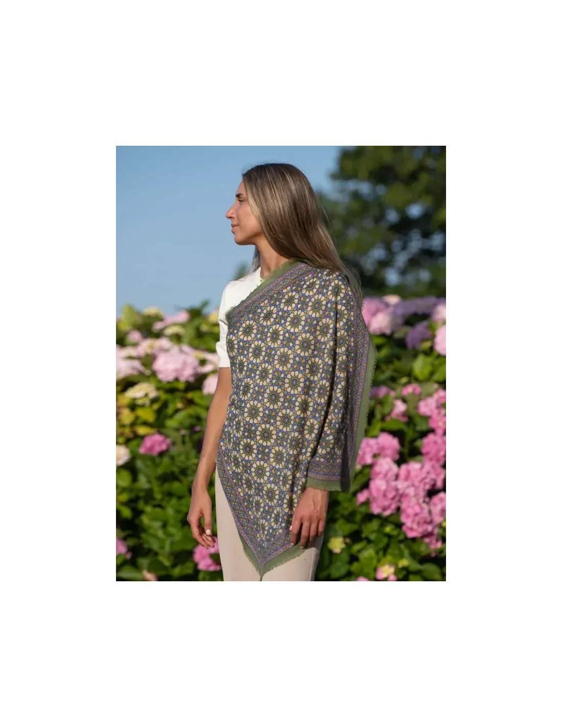 PAÑUELO DE SEDA Y LANA VERDE COLORES DE OTOÑO