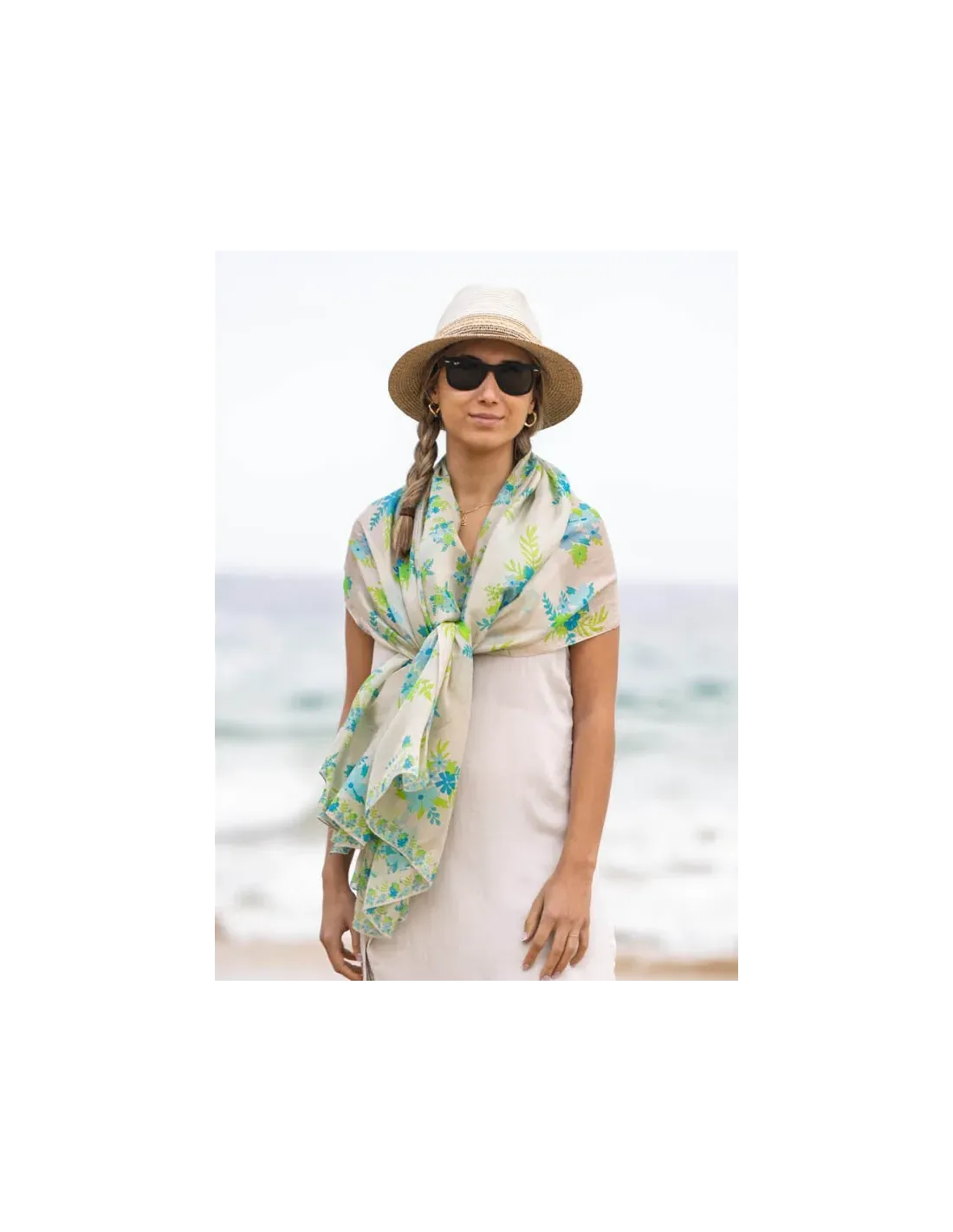 FOULARD SEDA BICOLOR FLORES VERDE COLORES DE OTOÑO
