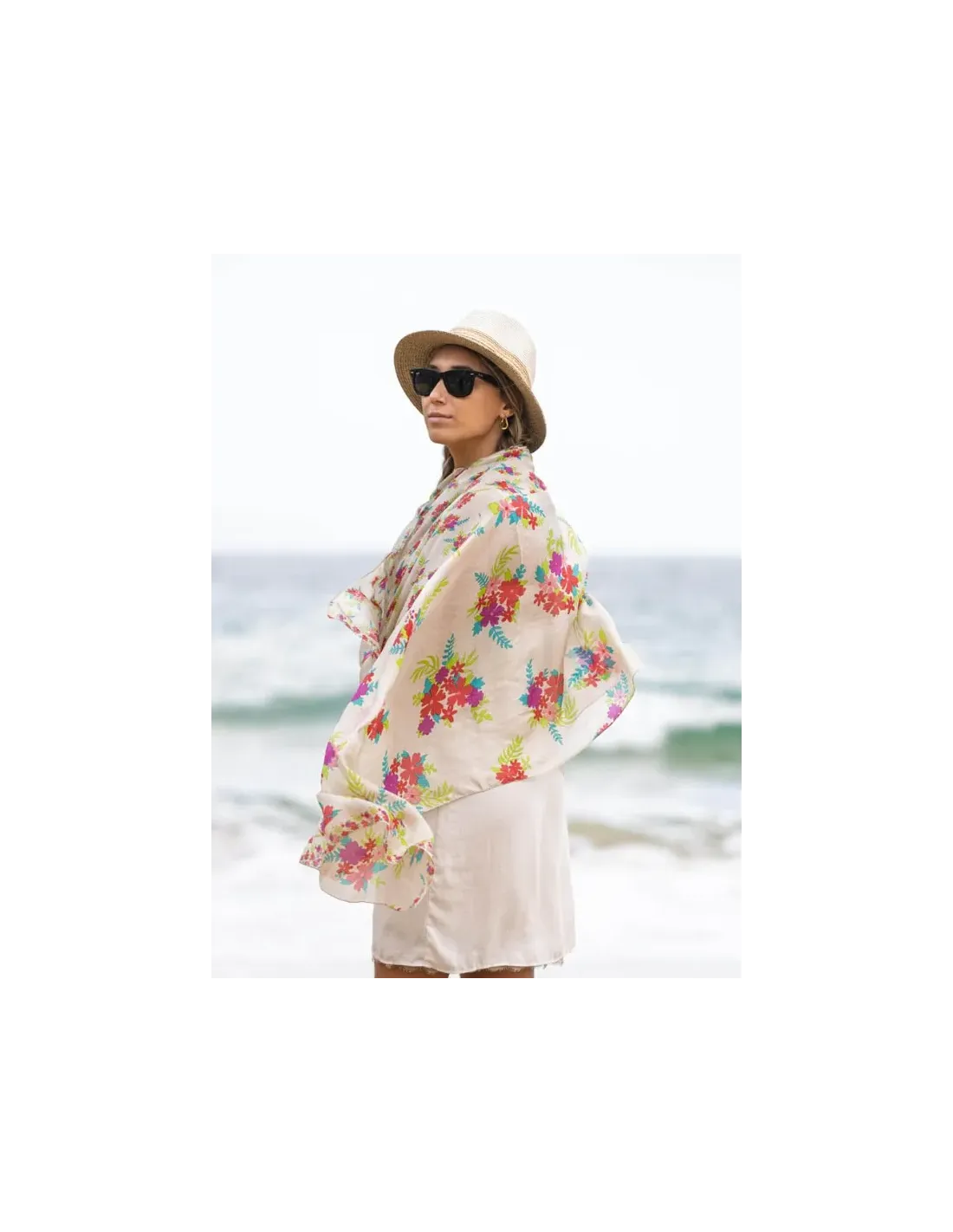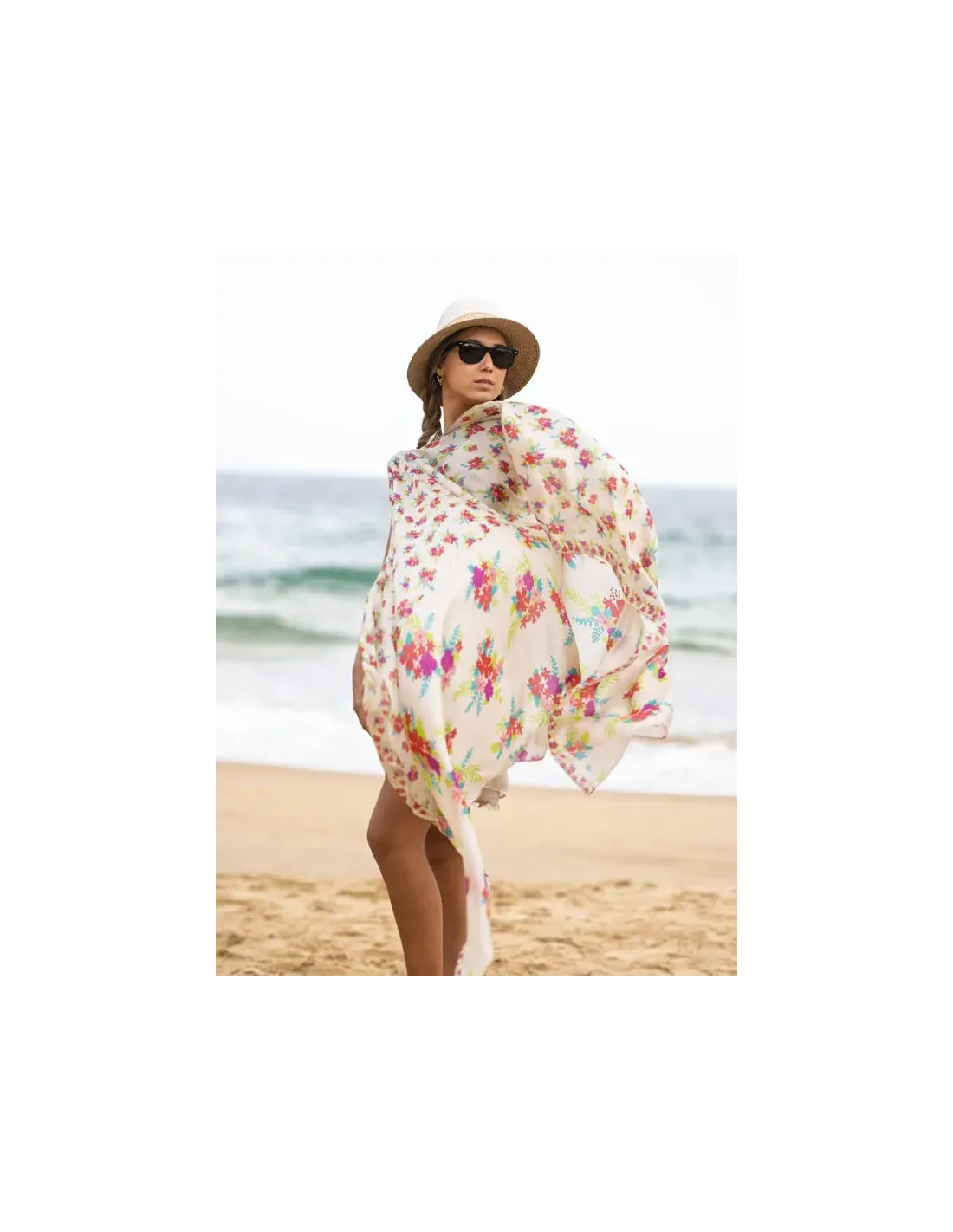 FOULARD SEDA BICOLOR FLORES ROJAS COLORES DE OTOÑO
