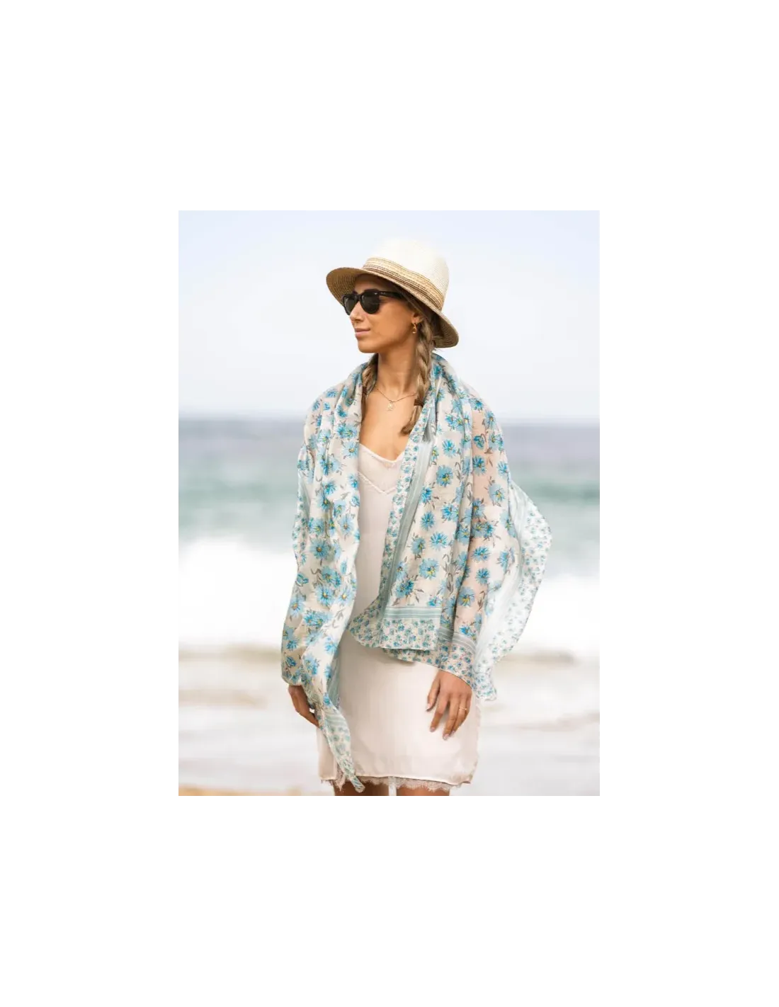 FOULARD MARGARITAS CELESTE COLORES DE OTOÑO