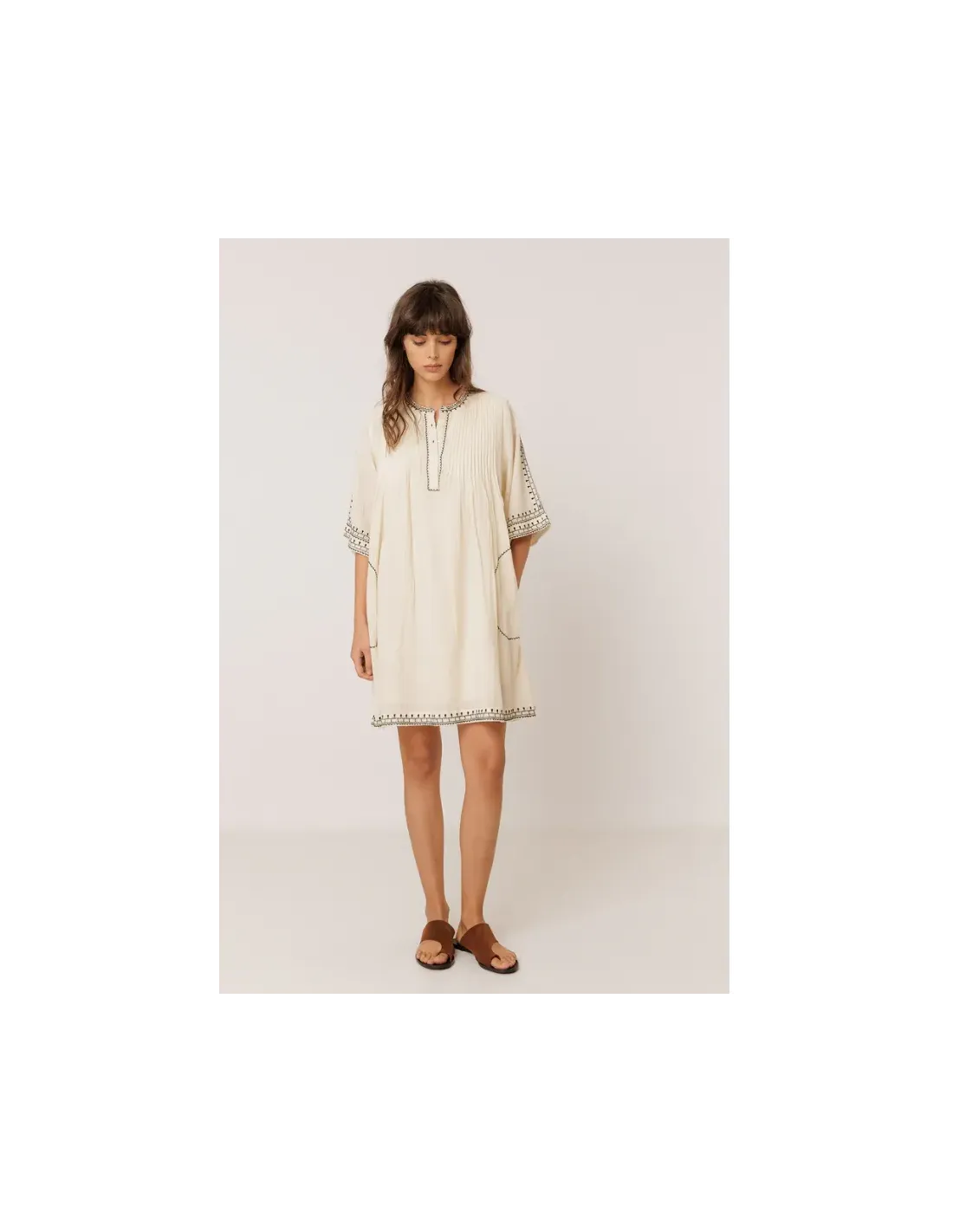 VESTIDO BORDADO BLANCO MANGA CORTA INDI&COLD